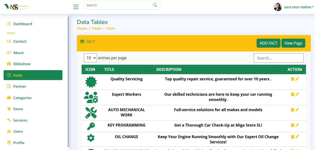 Sara successfully developed a full-stack car tire parts website with both client and admin interfaces during Level 2 course, demonstrating strong proficiency in web development.