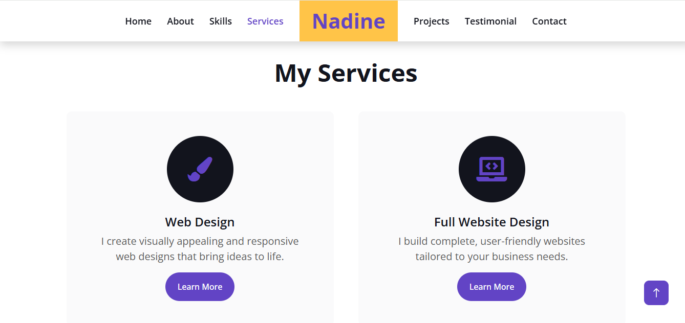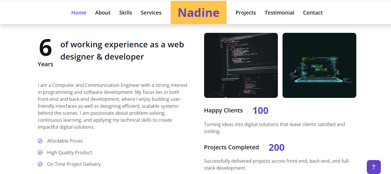 Nadine designed and built a modern, fully responsive personal portfolio website that highlights her skills.